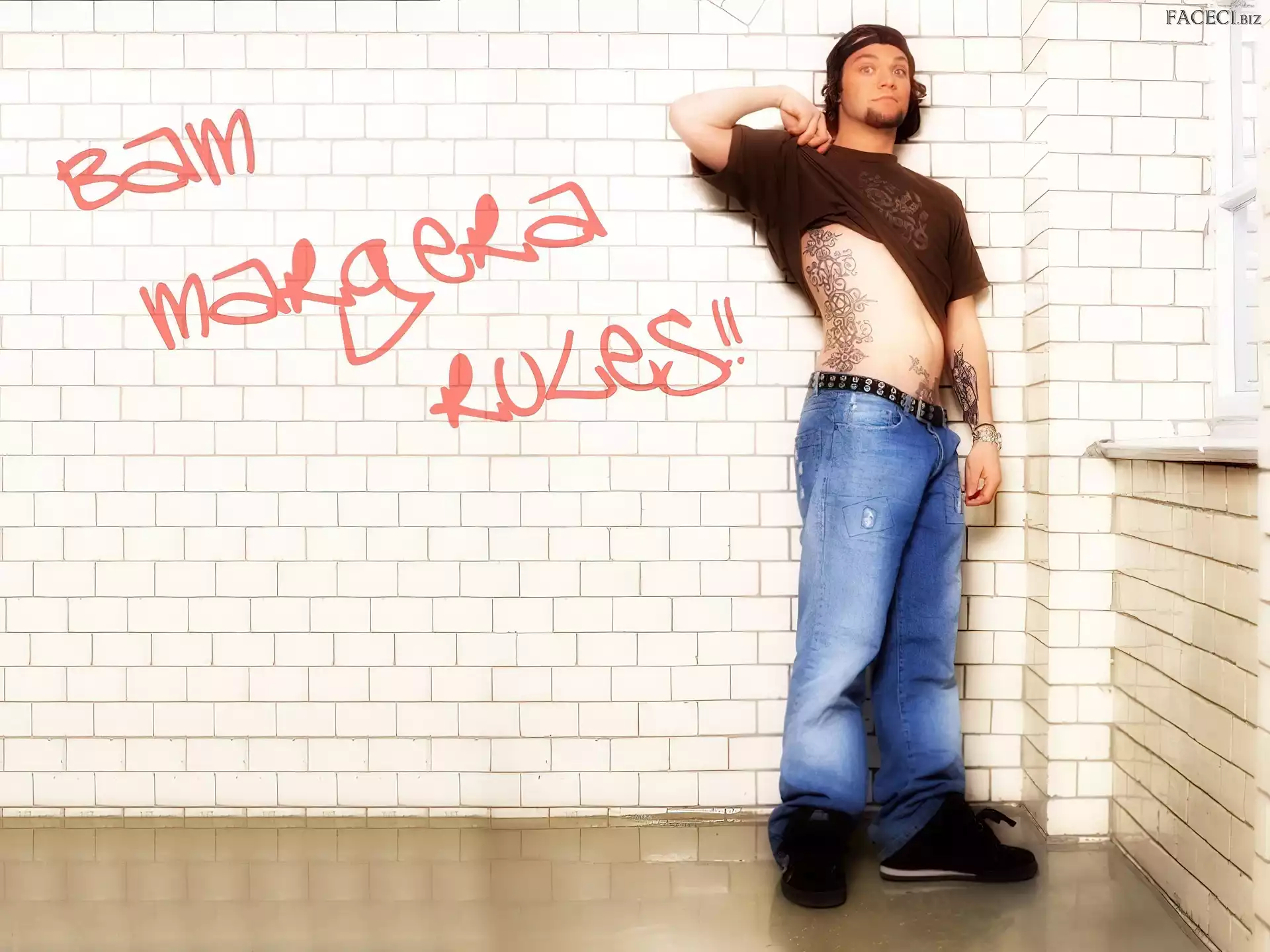 zegarek, Bam Margera, deskorolka kurtka, Bam Margera, rozpięta t-shirt, Bam Margera, brązowy okulary, Bam Margera, butelka włosy, Bam Margera, ciemne okulary, Bam Margera, twarze